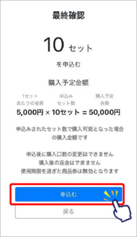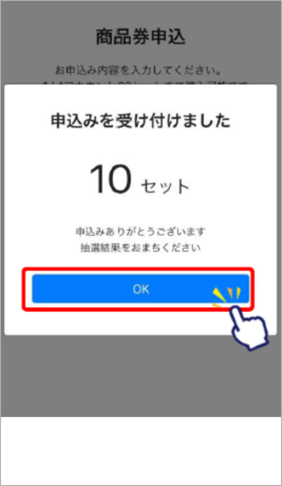 QRコードを読取る方法と、お客様番号・確認番号を入力する方法で申込券が出ます。