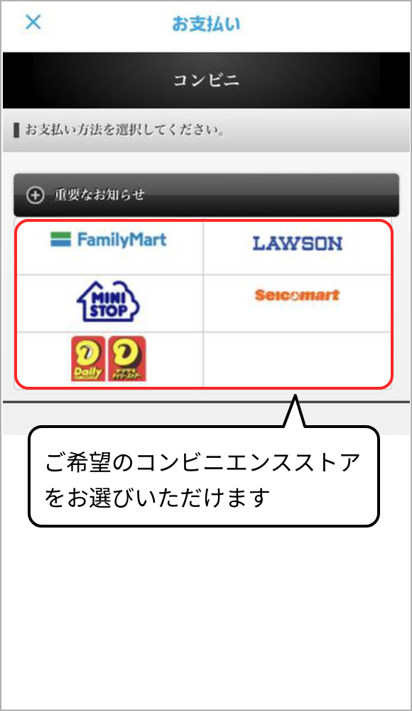 マルチメディア端末(Loppi)にて「申込券」を出力し、レジでお支払いいただきます。